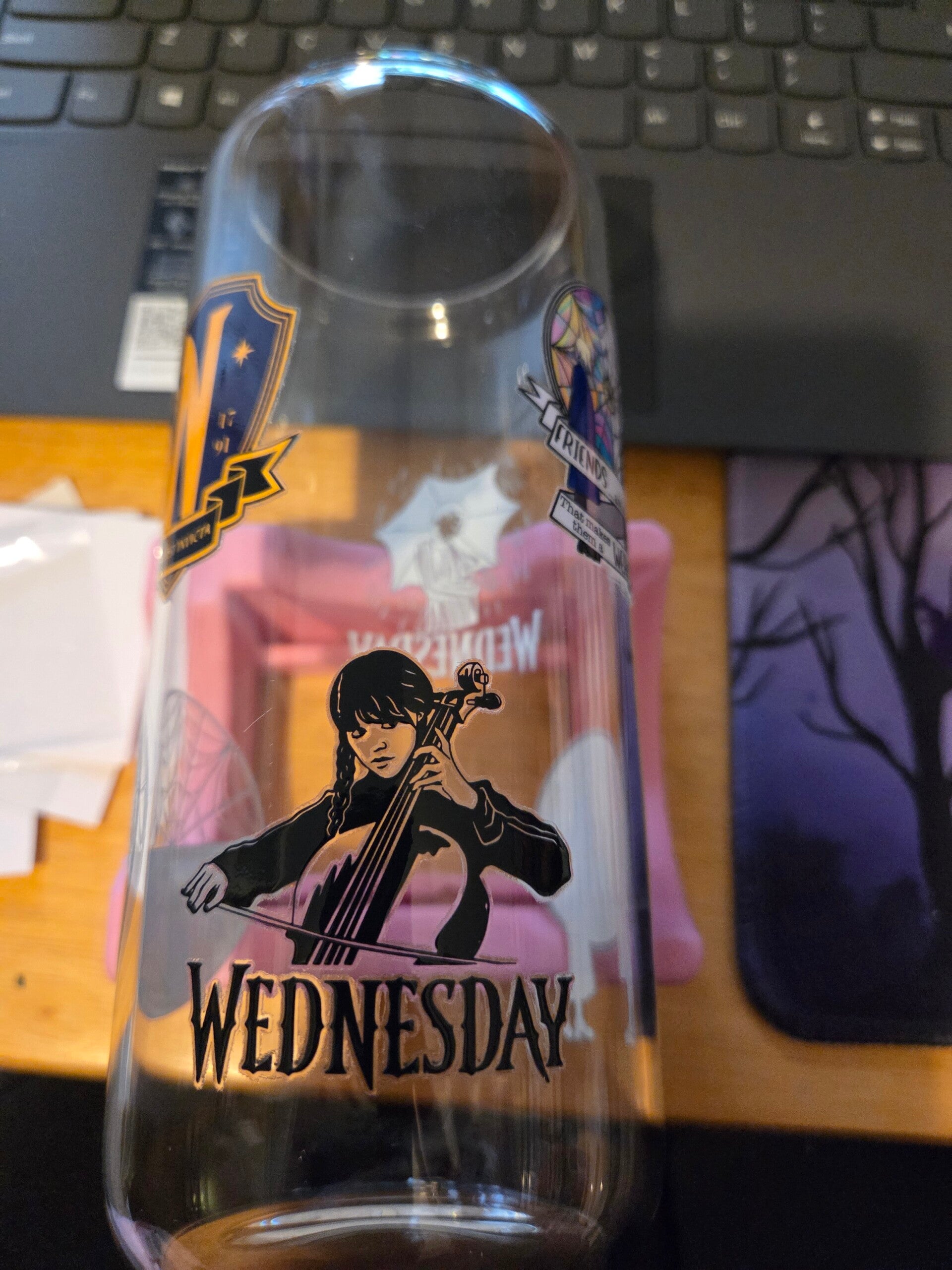 Where are all of my wednesday fans? This is a 20 oz tumbler. It is hand wash only.